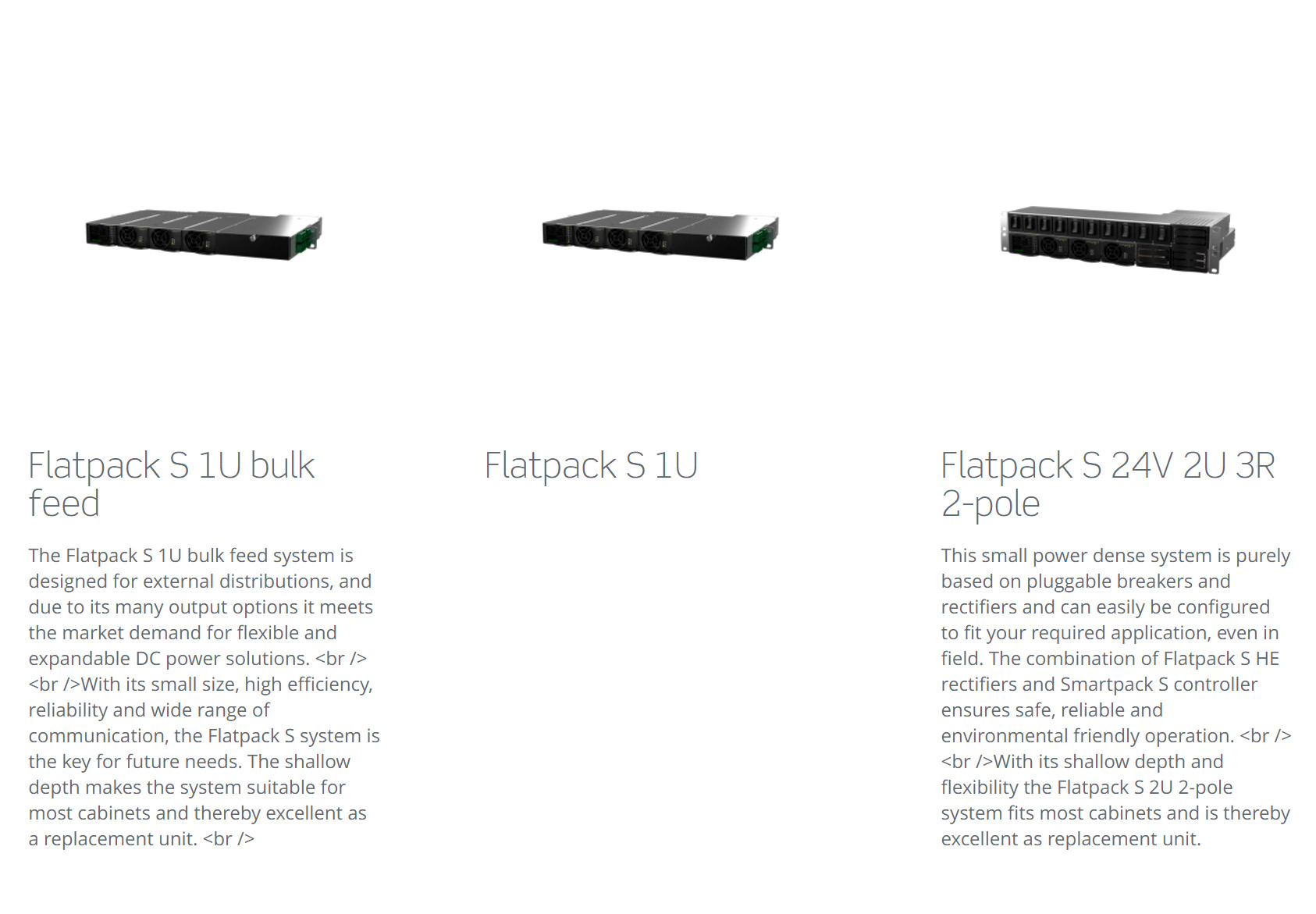 Flatpack S sistem platformu için tasarlanan Smartpack S, birçok alan kısıtlı uygulamada kullanılır.Smartpack S, 6 litrden daha az alanı alan 2-3kW'lık bir sistemi kapsamlı bir izleme ve kontrol sunar.