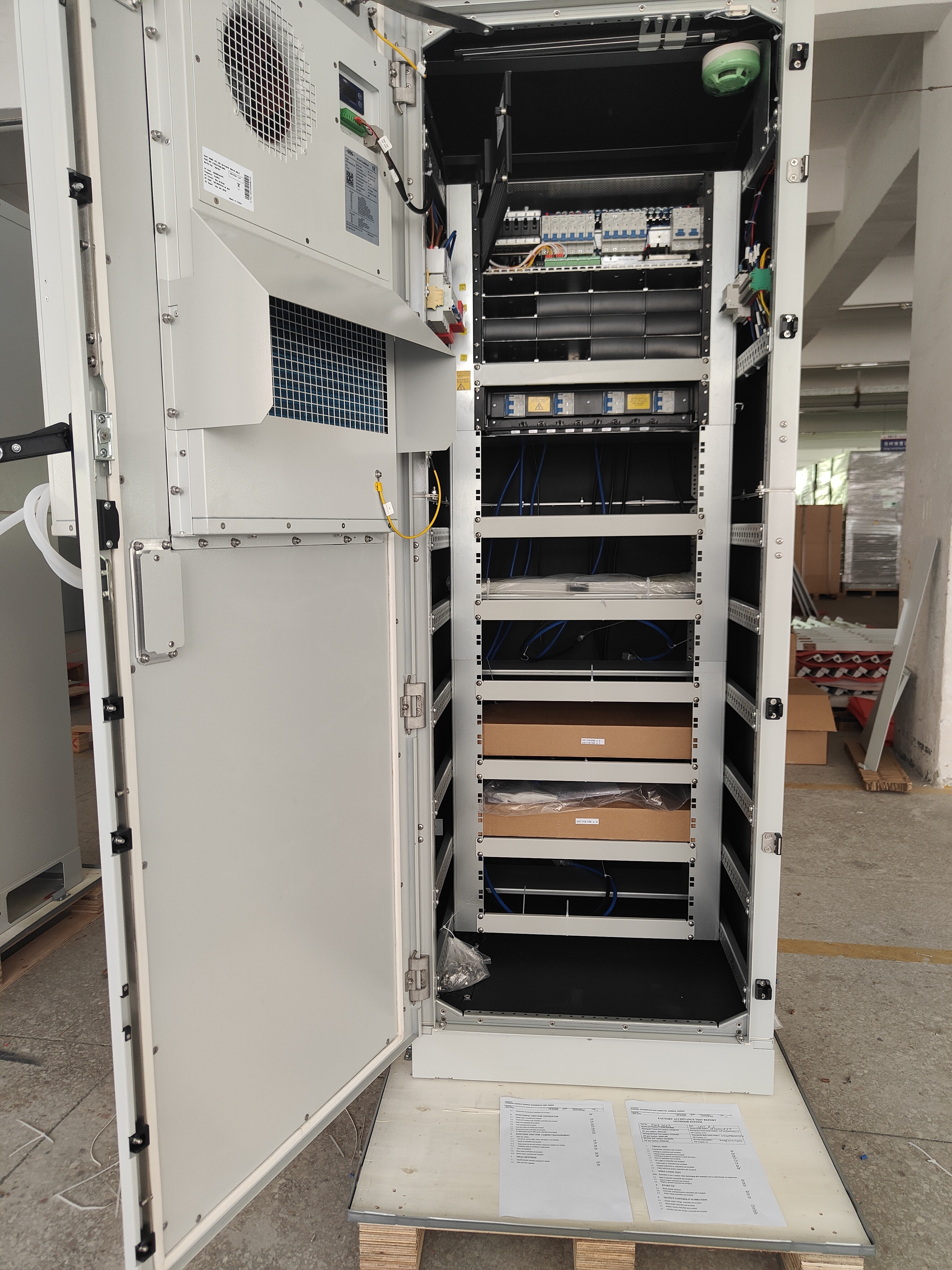 Bu 48V DC güç sistemi, ikili enerji girişlerini (ana elektrik ve güneş enerjisi) Tip 3 koruma sınıfı bir kabine (2000H × 700W × 1050mmD) entegre eder.Dış ve endüstriyel ortamlar için tasarlanmışKabinetin özellikleri:
